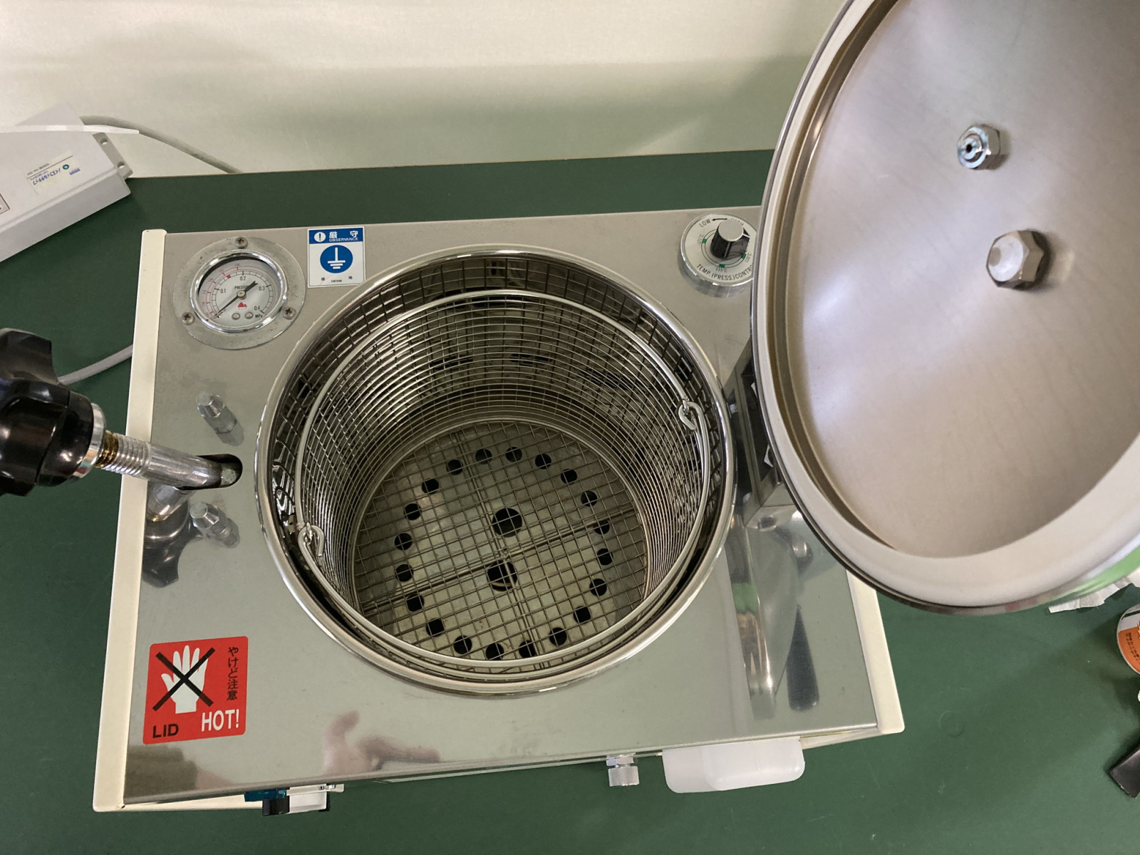| 動作確認事項 | 弊社での動作確認事項は以下の通りです。 ・通電することを確認いたしました。 ・空焚き防止機能が作動することを確認いたしました。 ・実際に運転し、圧力が0.16Mpaまで上昇することを確認いたしました。 ・127℃で1時間運転しました。 ※所々に錆びている箇所がございます。 ※温度計が搭載されていないため実際に設定温度まで上昇したかは不明です。 ※中古品の為、多少のキズや汚れがございます。予めご了承ください。 ※その他の動作確認や保証をご希望の場合はご相談ください。 |
