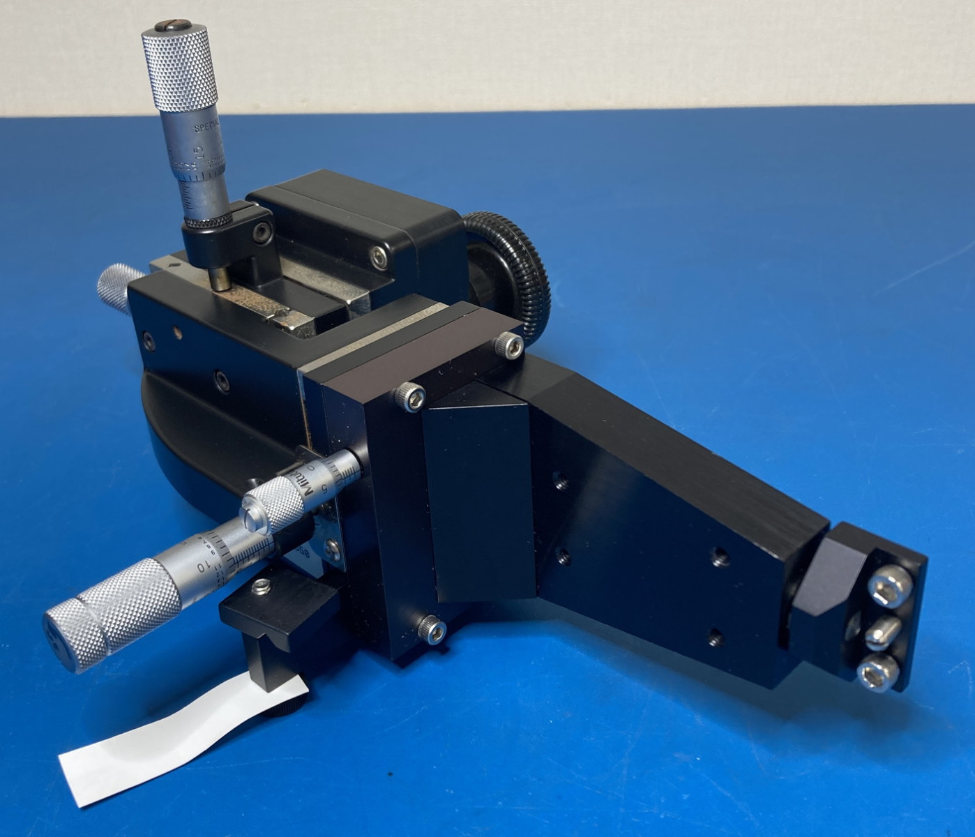 | 動作確認事項 | 実際に研究機関で使用されていたものを引き取ってまいりました。 弊社での動作確認事項は以下の通りです。 ・位置調整・角度調整つまみが、すべて機能することを確認いたしました。 ・知識・環境不足のため、その他の動作については確認することができません。 ・中古品の為、多少のキズや汚れがございます。予めご了承ください。 ※別途、動作確認や保証をご希望の場合はご相談ください。 |