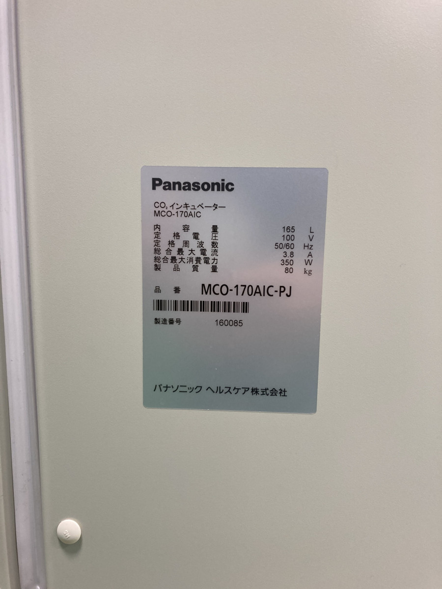 【RL-723】Panasonic CO2インキュベーター MCO-170AIC-PJ 温度上昇確認済・カラータッチパネル・美品!